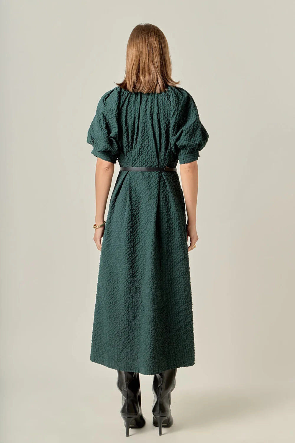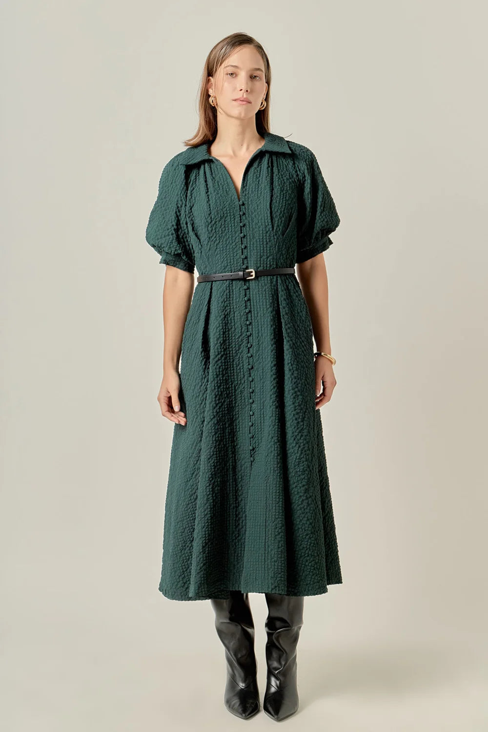 Puffer Midi Shirt Dress - Dark Green - Beige (Style #SS398D)