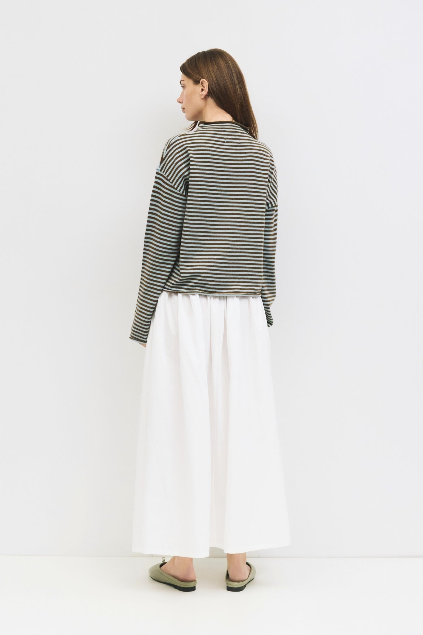 Rolled edges on neckline, cuffs & bottom