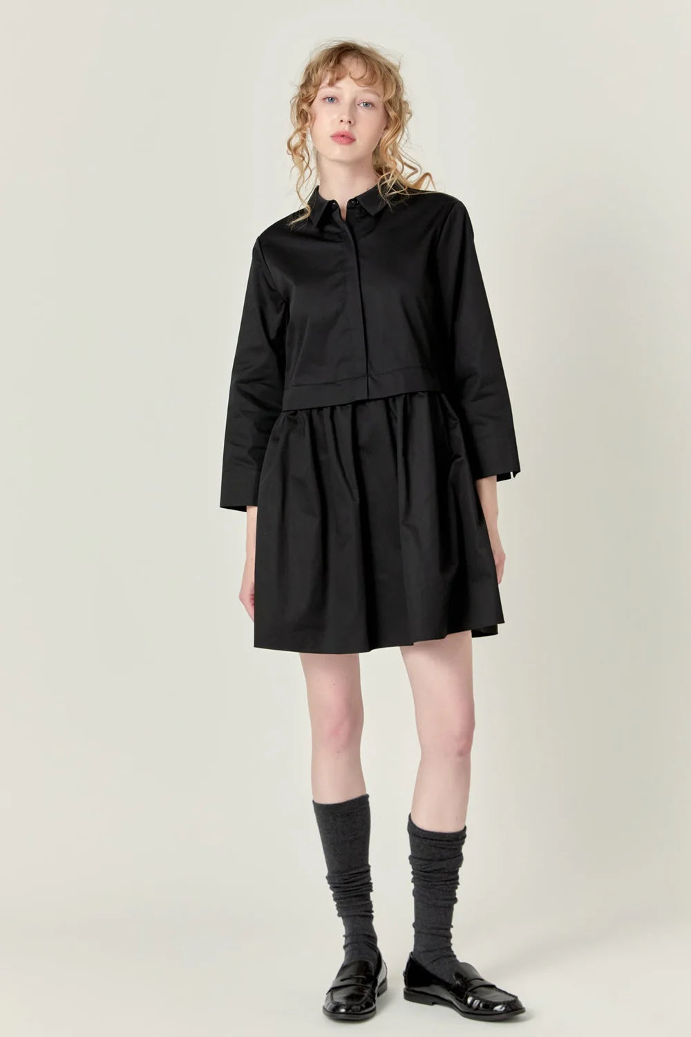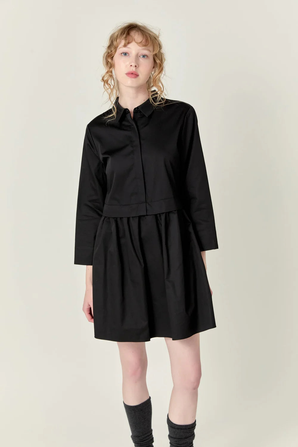 Shirt Mini Dress - Black - Navy (Style: JJ676D)