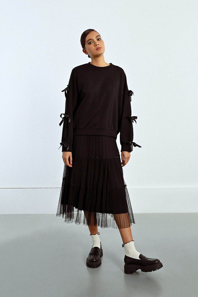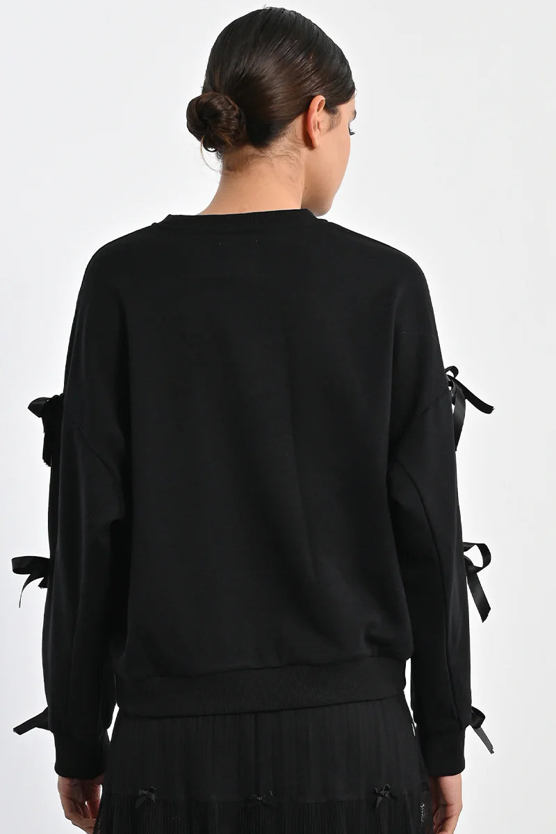 Ribbon Bow Detail Sweatshirt - Black