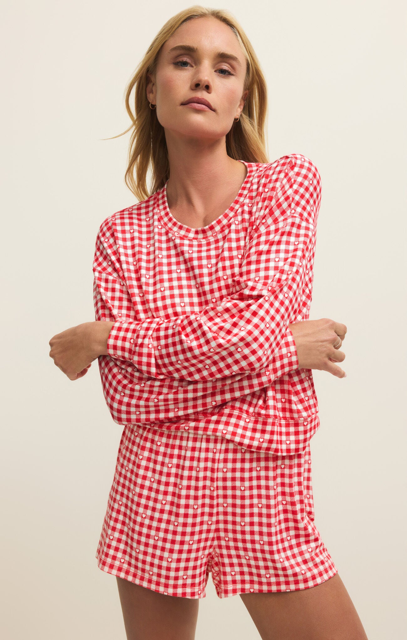 Bisous Gingham LS Top - Kiss Me Red