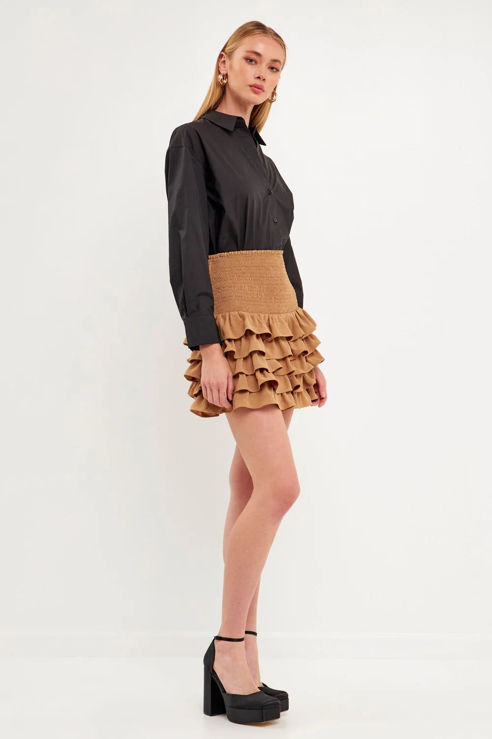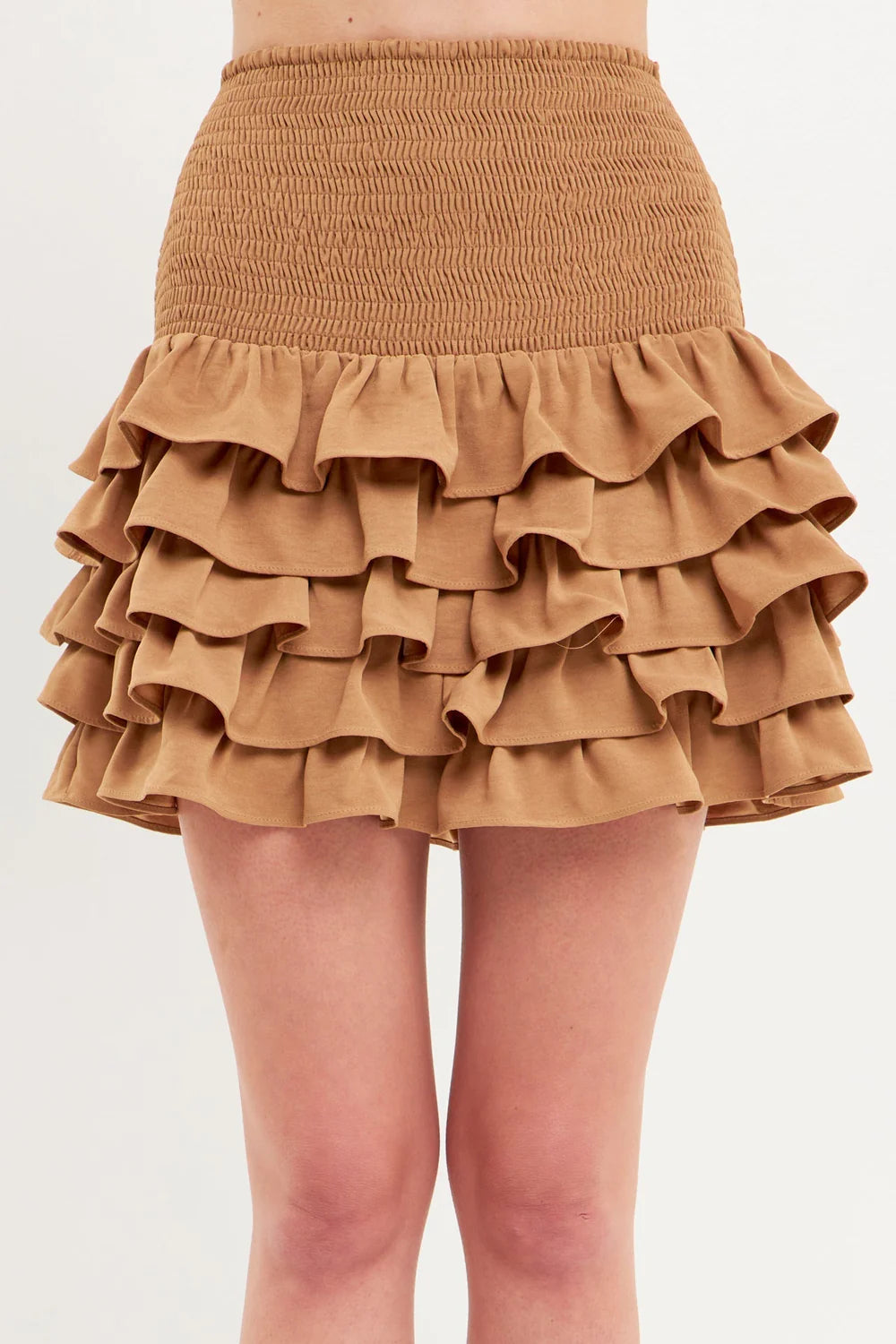 Tiered Ruffle Mini Skirt - Beige (Style:UK869K)