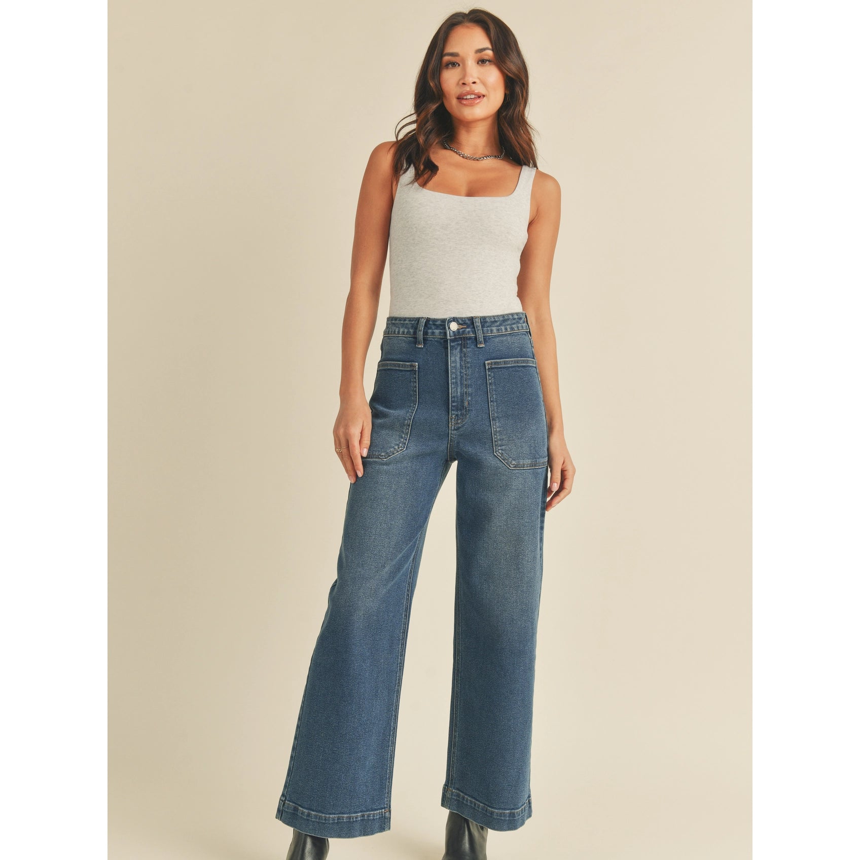 Dark rinse / Fern Green / Medium rinse wide leg jean