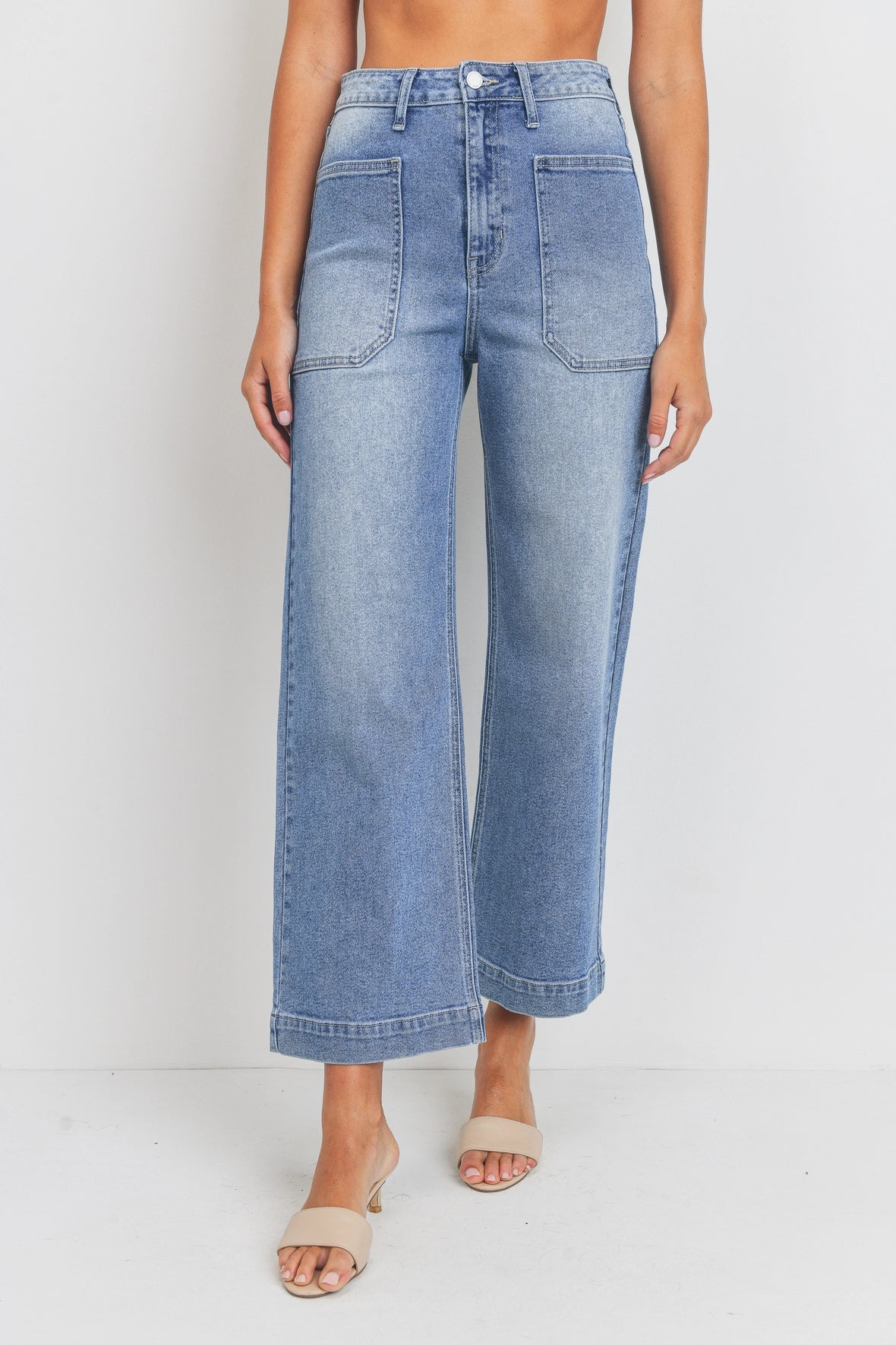 Subtle fading in thighs & patch pockets on front & back