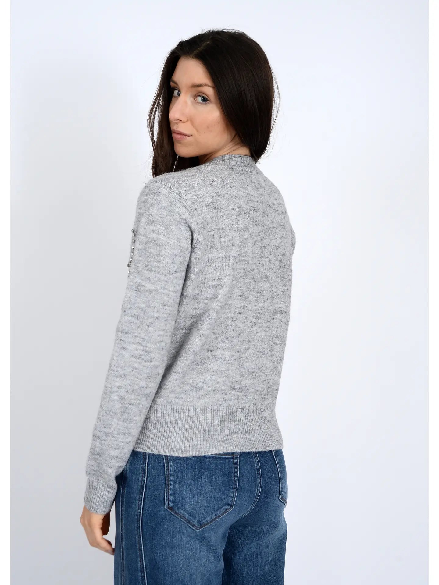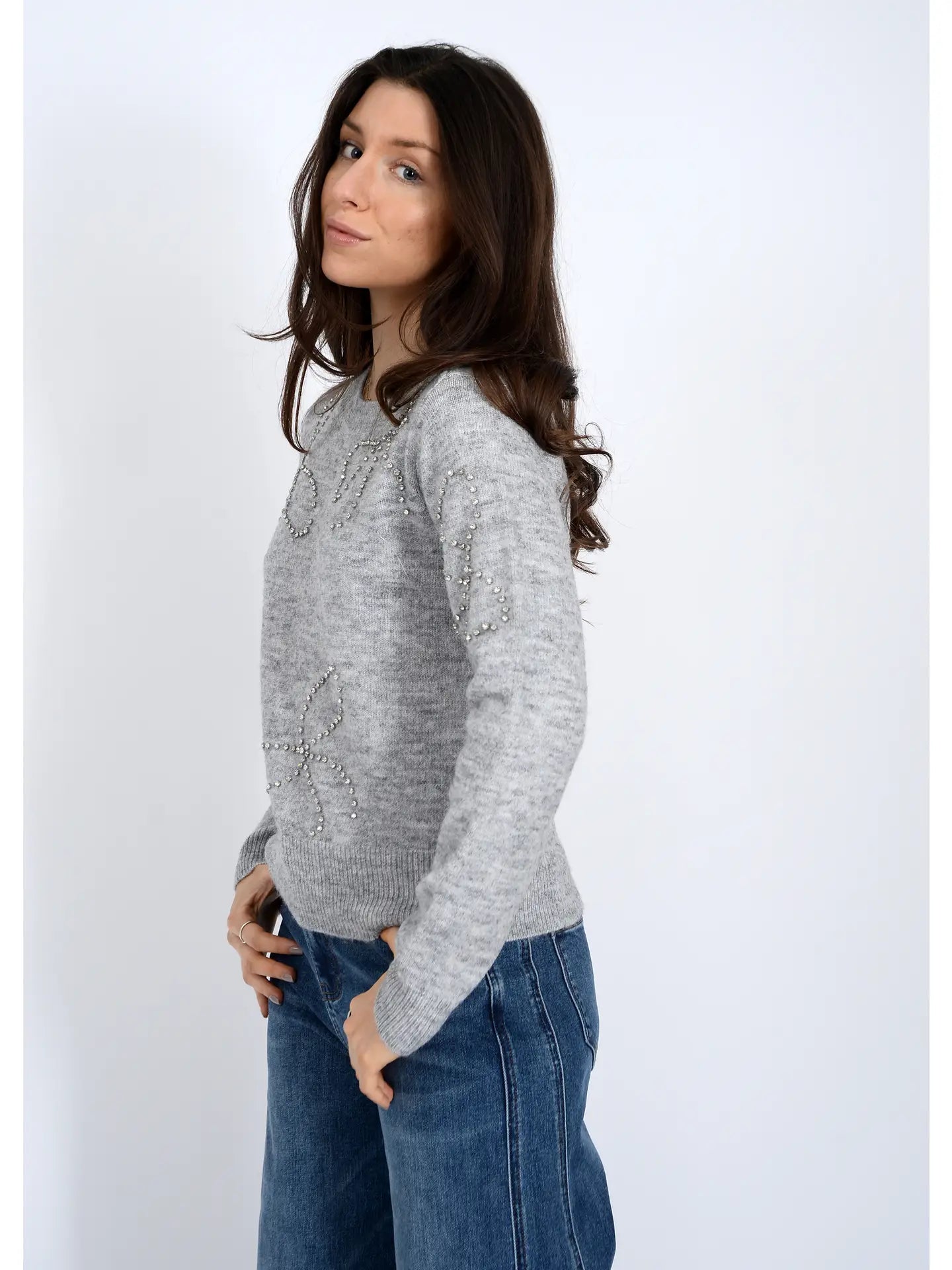 Ginevra Rhinestone Bow Sweater - Heather Grey (77S301S)