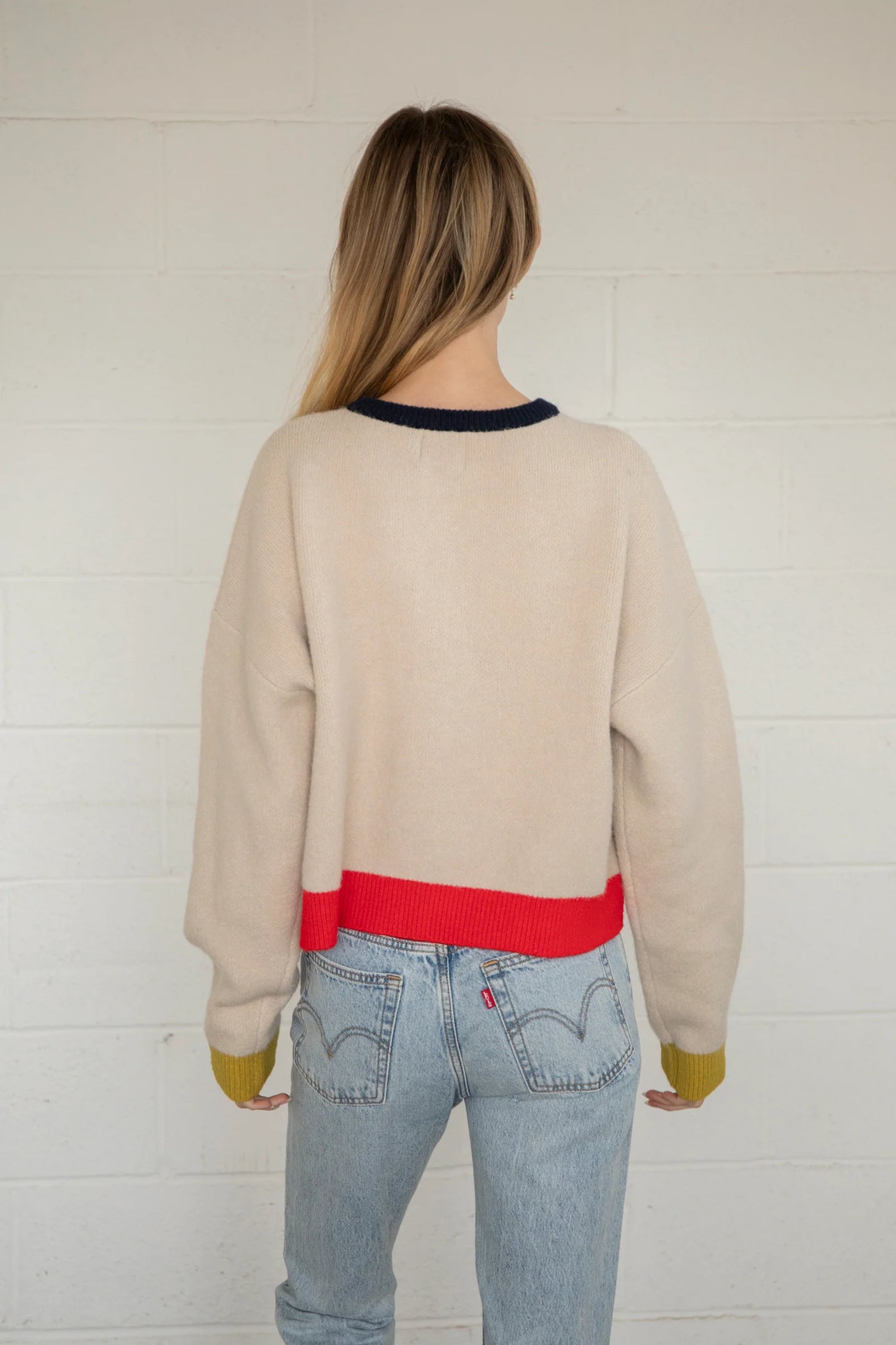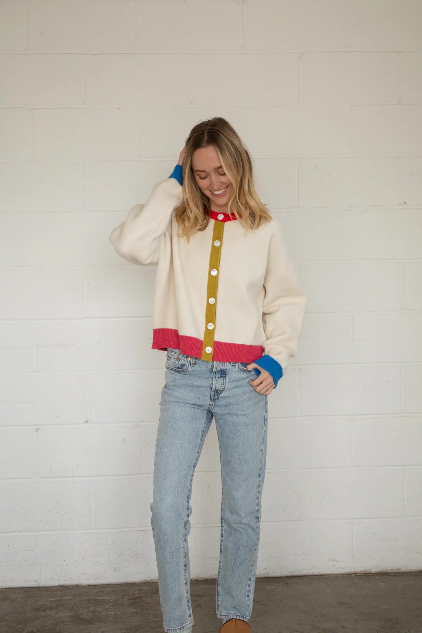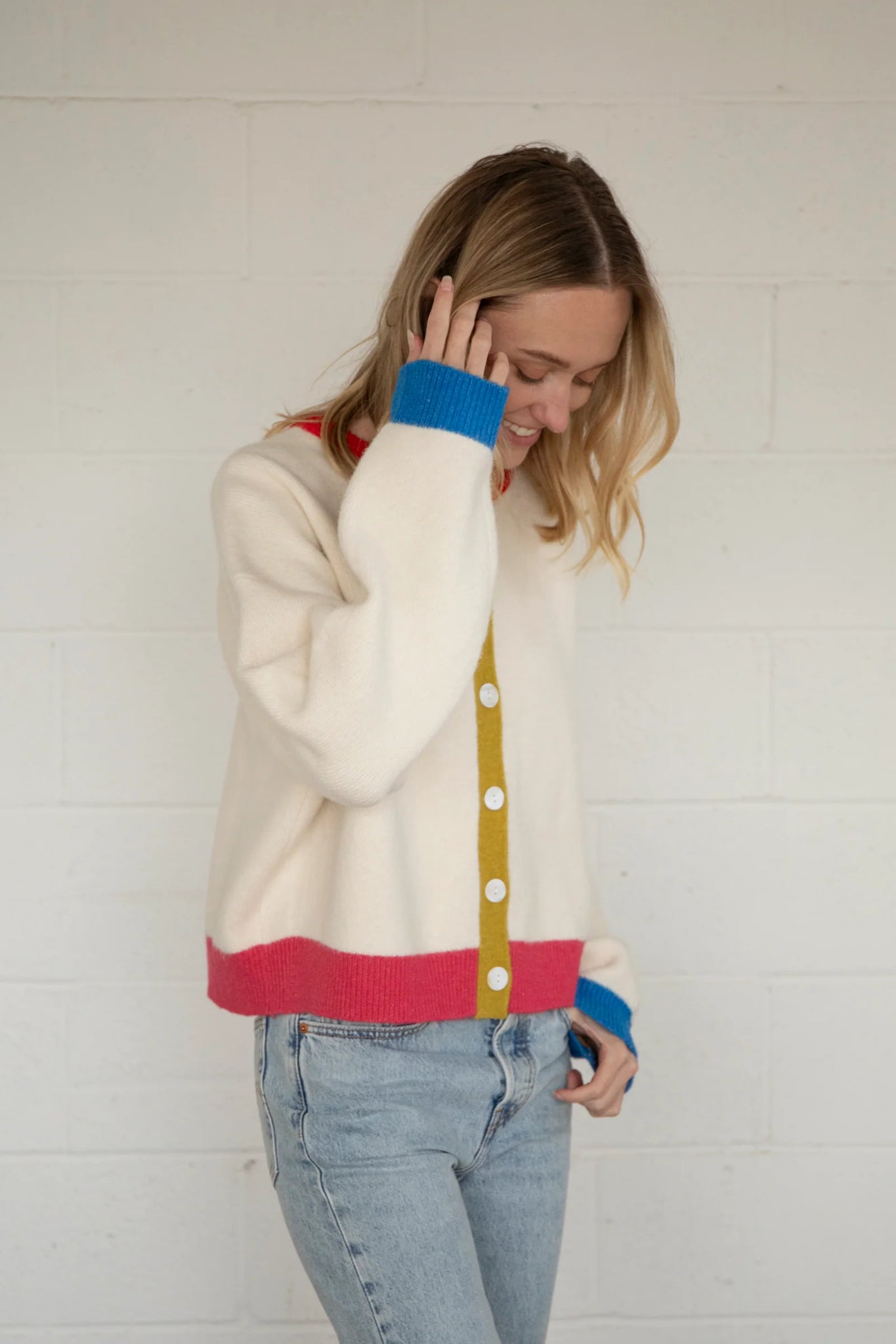Addie Cardigan - Color Block Cream - Taupe (TBW14213)