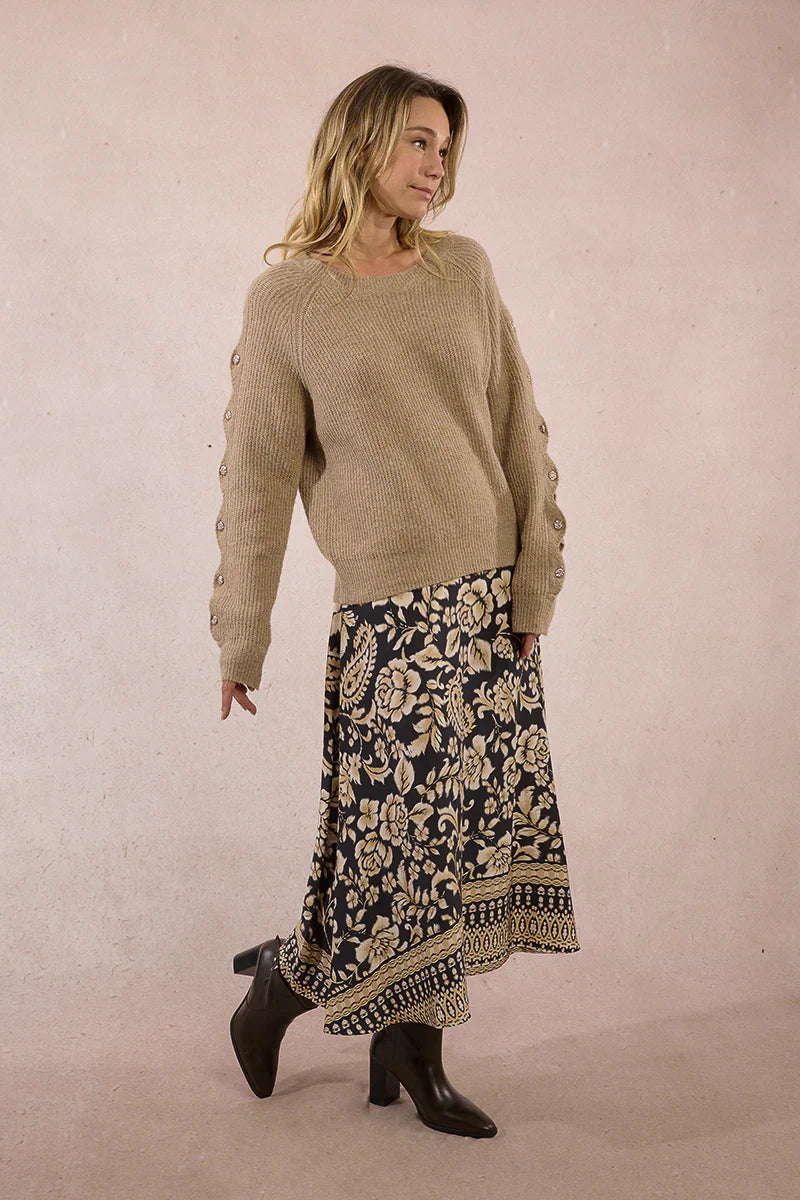 Button Sleeve Detail Sweater - Beige