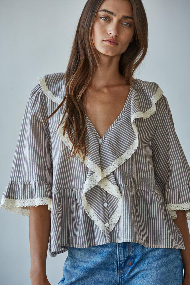 Chloe Blouse - Taupe Stripe (Style L9000)
