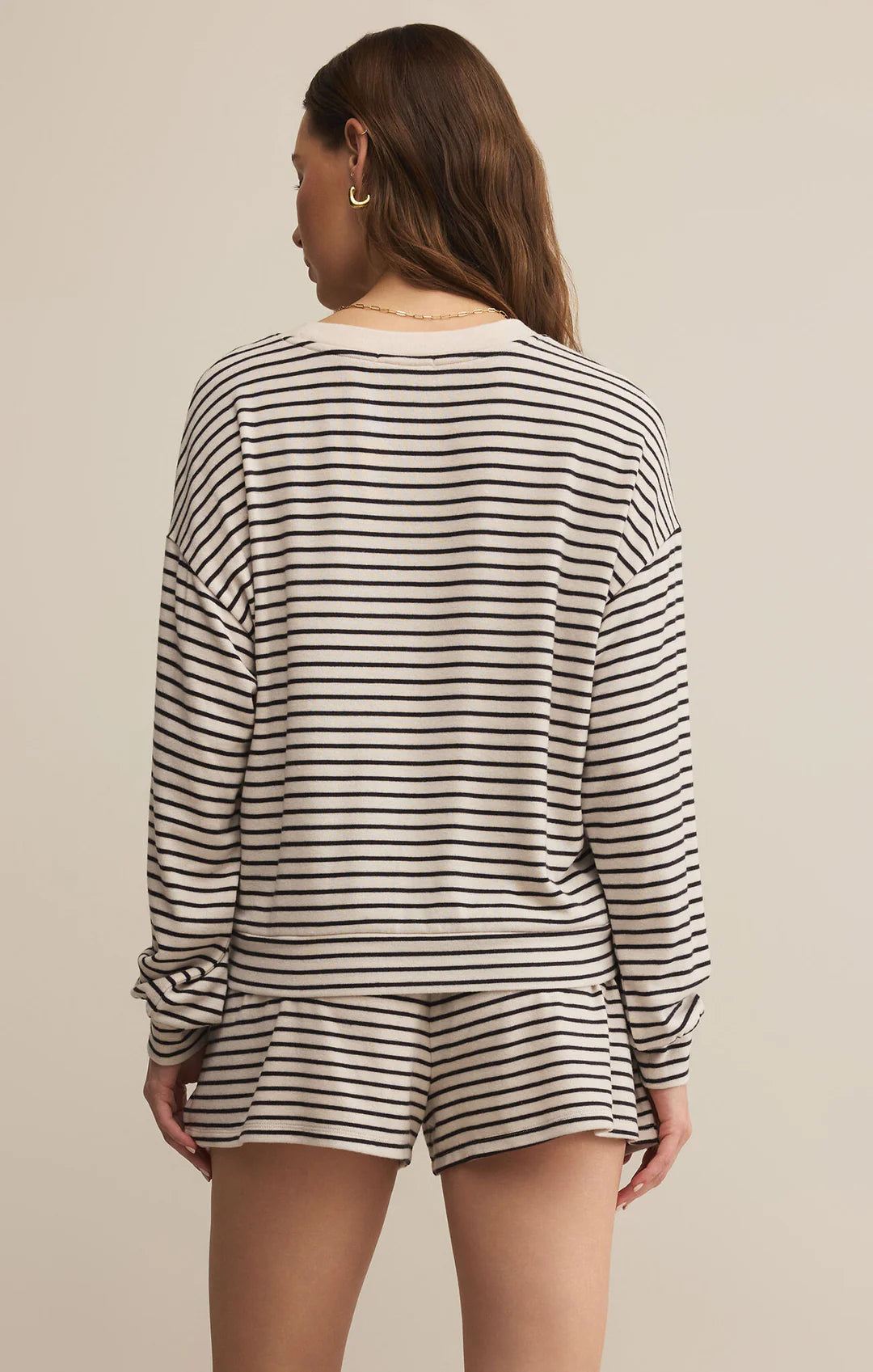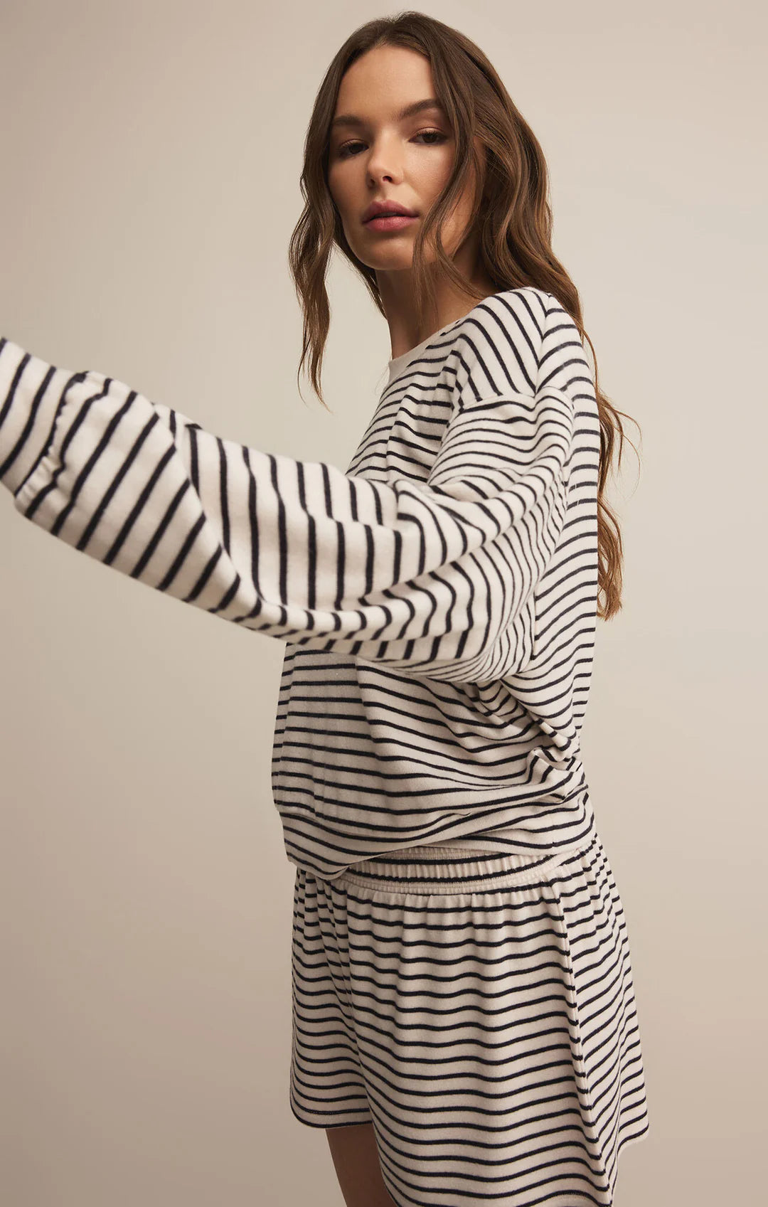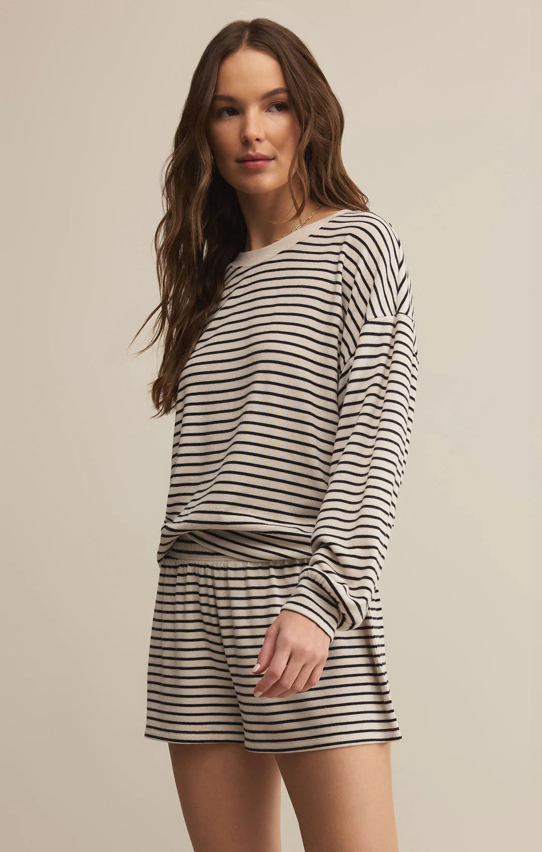 Luxe Stripe LS Top - Black Stripe on Crystal