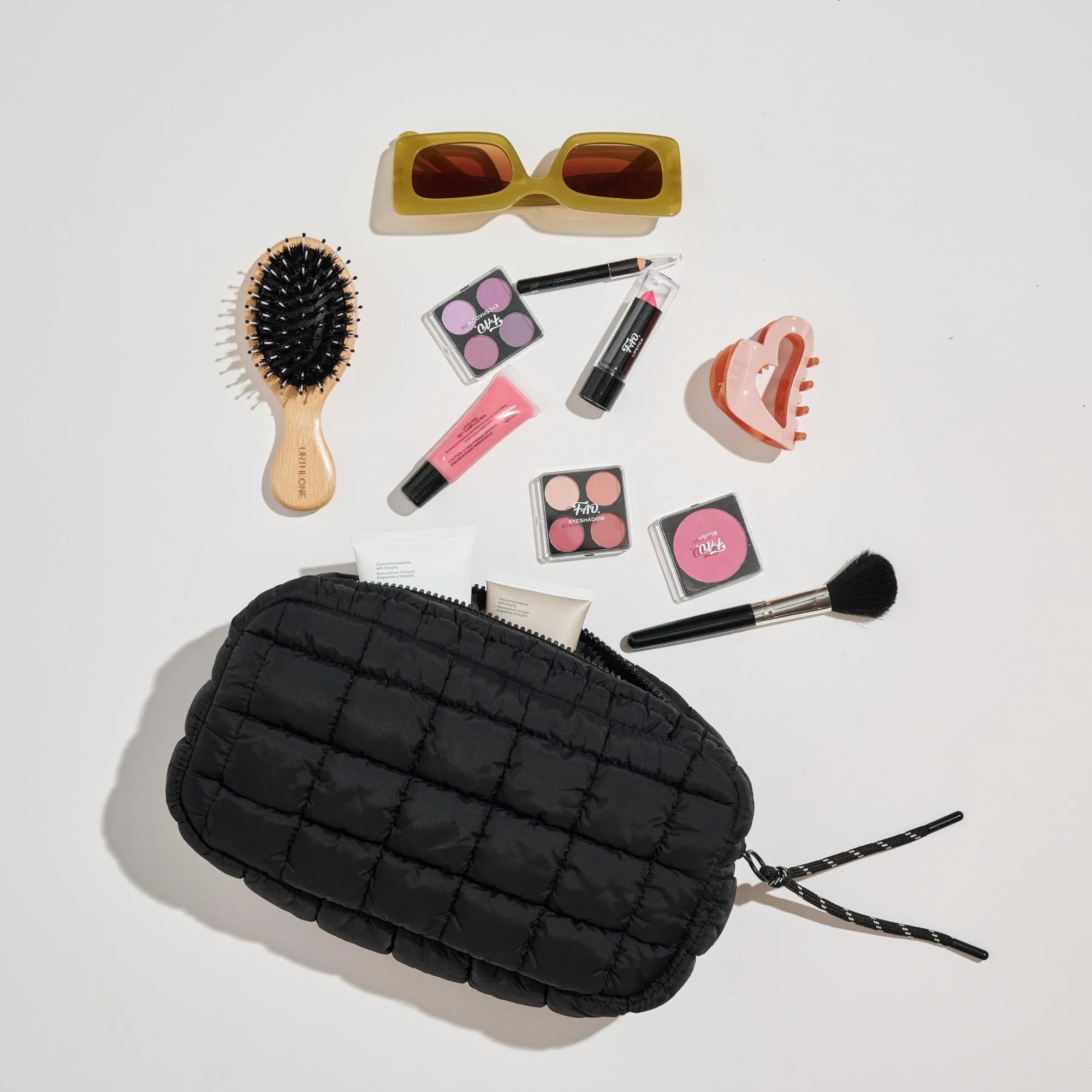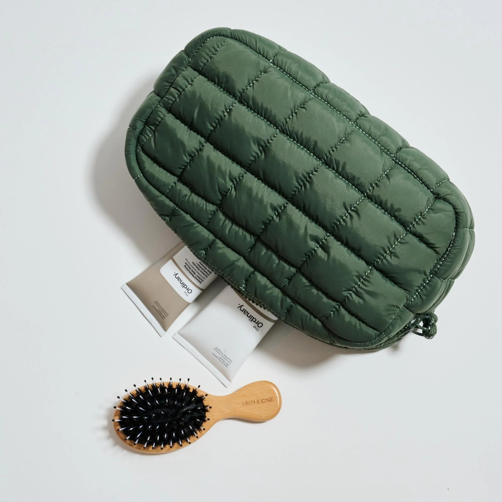 Cloud Nine Quilted Puffer Nylon Cosmetic Pouch - Black - Dove Grey - Burgundy - Denim - Olive