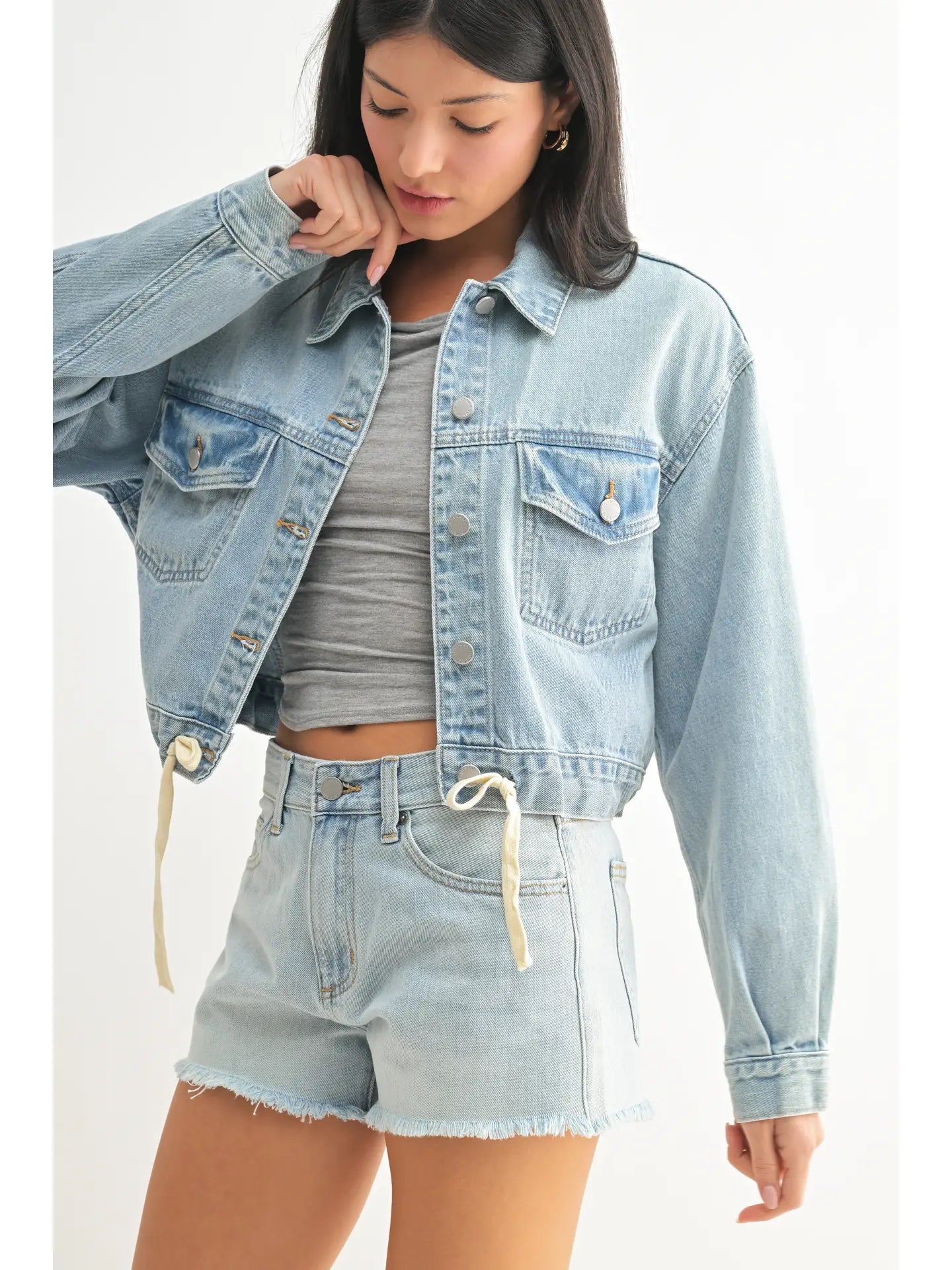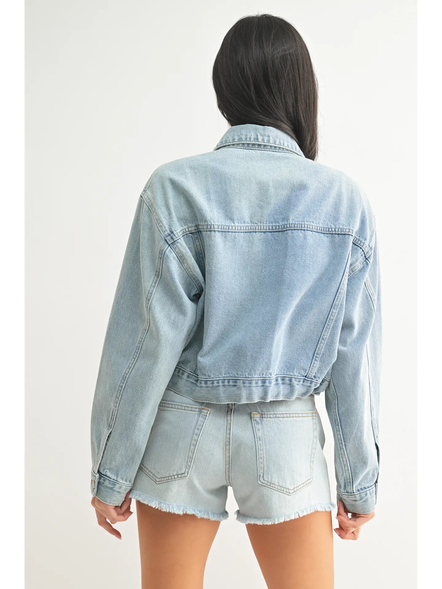 Zadie Crop Denim Jacket - Light Denim (Style DA786N-LT)